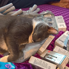 Carly was born from a litter with her brother. A young couple adopted them both and, assuming they were both boys, named them Carson and Marvin (after Carson Palmer and Marvin Lewis). After a trip to the vet, though, they realized that Carson was actually a Carly and her name was changed. Carly was the most affectionate cat and she was always searching out people. When the young couple had kids, Marvin couldn’t deal, so they had to get rid of him. But Carly stuck it out. And she continued to stick it out as the children grew and their parents let them kick her and pull her tail, and basically abuse her daily. She was neglected by the couple who were now focused on their kids and she had an all-around rough life for 11 years. From here, the man’s aunt decided to help out and took Carly from their home. The only problem is, she is allergic to cats, so she had two hairless cats… with claws. Since Carly was declawed, she had only her teeth to defend herself and no way to communicate with these hairless cats as (from what I’ve been told) cats communicate through movement of their fur. So the aunt was searching for someone to take this cat and give her a good home. That is where Bryan found the post on Nextdoor and we agreed to take her if she could hold onto her for another couple weeks so that we could get into our house.